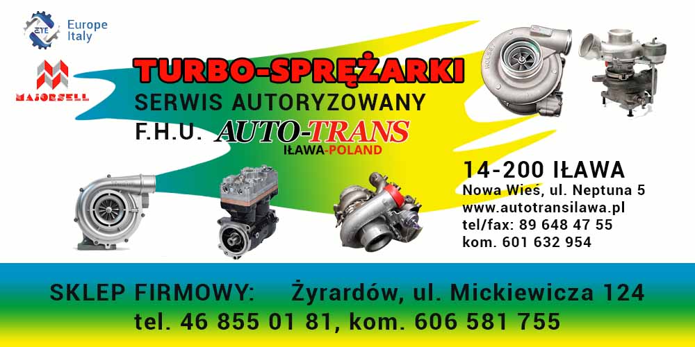 Firma Auto-Trans działa na rynku od 1996 roku, ściśle współpracując z ETP Europe Italy oraz MAJORSELL ENGLAND. Oferujemy Państwu pełen asortyment turbosprężarek i sprężarek powietrza do samochodów osobowych, dostawczych oraz ciężarowych, agregatów prądotwórczych, maszyn budowlanych, jak również do maszyn rolniczych.